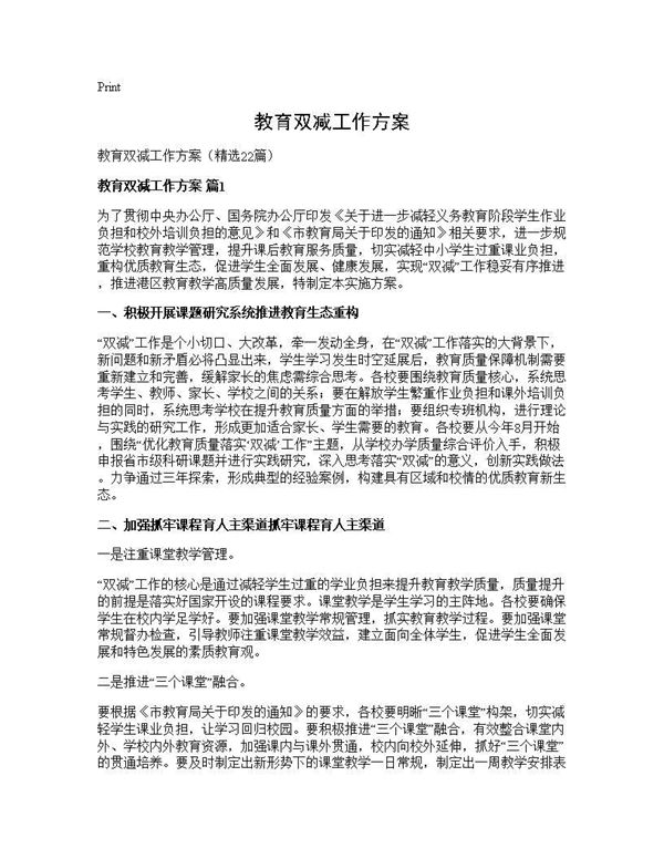 教育双减工作方案是国家为减轻义务教育阶段学生过重作业负担和校外培训负担而实施的一项重要政策。该方案旨在通过优化校内教学质量和规范校外培训市场,有效缓解学生和家长的压力,促进学生全面发展。具体措施包括严格控制作业总量、提高课堂教学效率、加强课后服务供给,同时严格管理校外培训机构,禁止超标超前培训行为。通过校内校外协同治理,该方案致力于构建更加科学合理的教育生态,保障学生健康成长,推动教育公平发展。