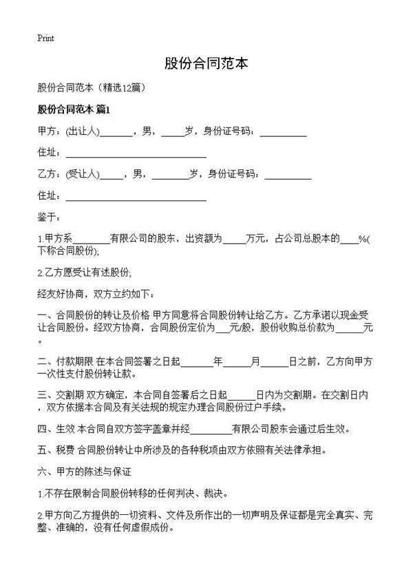 股份合同范本 (共21页) 【免费下载】