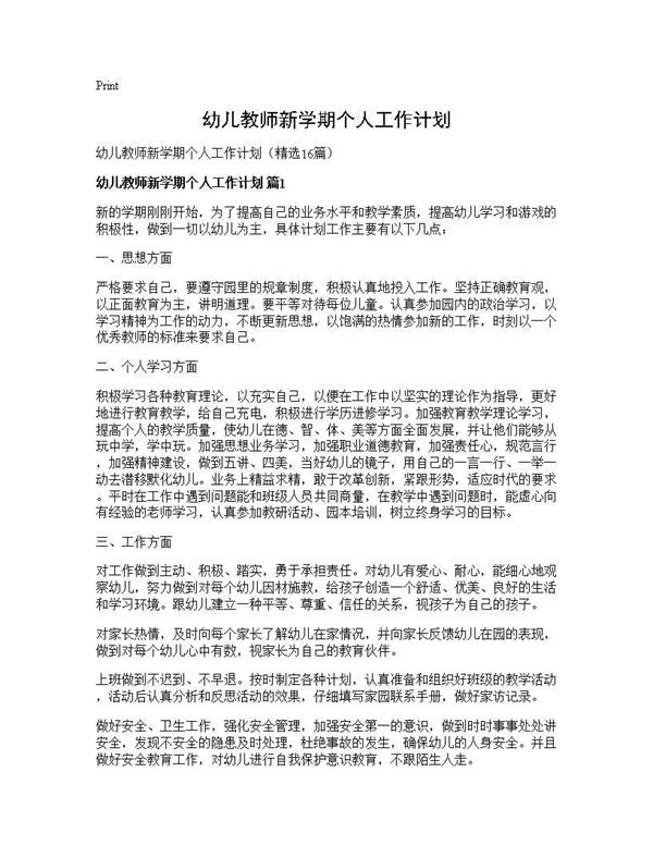 幼儿教师新学期个人工作计划 (共31页) 【免费下载】