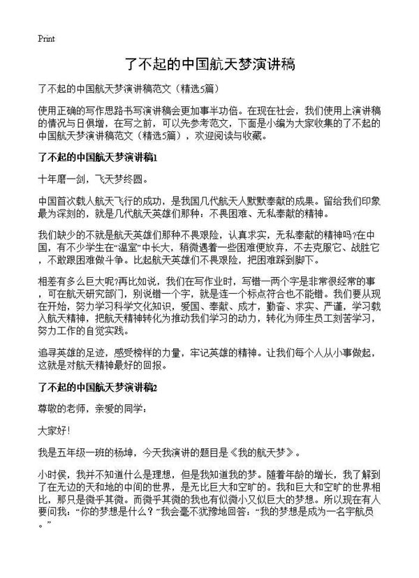了不起的中国航天梦演讲稿 (共4页) 【免费下载】