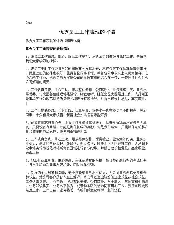 优秀员工工作表现的评语 (共40页) 【免费下载】