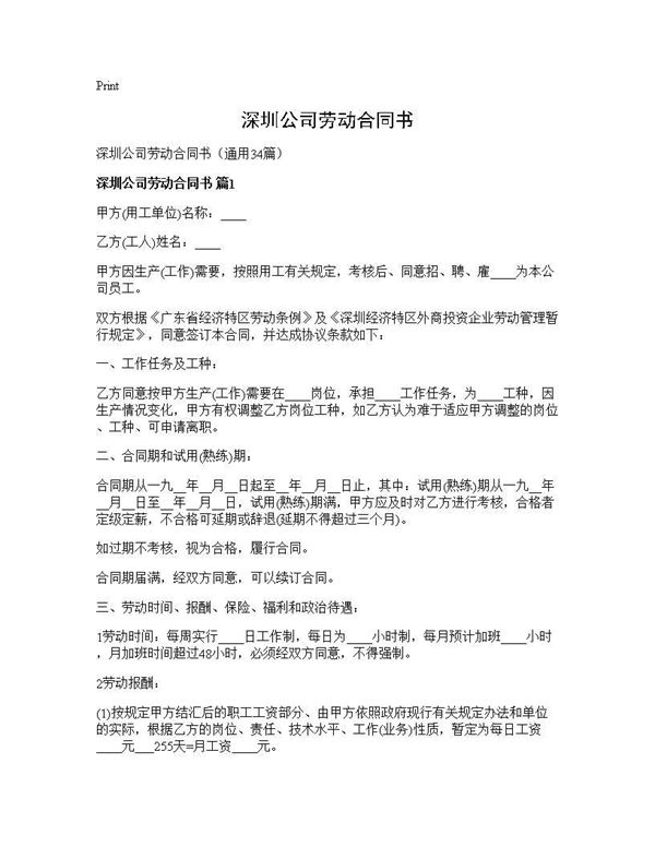 深圳公司劳动合同书 (共113页) 【免费下载】