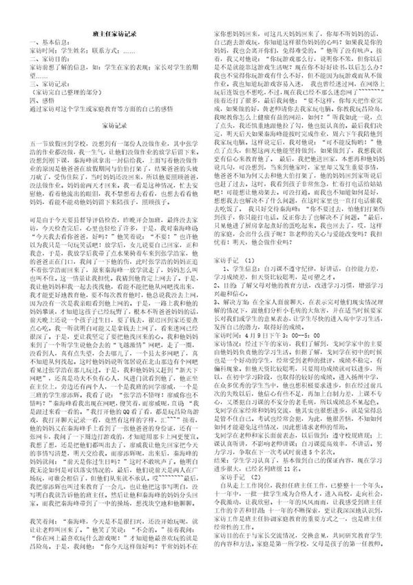 班主任家访记录 (1)表模板 (共4页) 【免费下载】