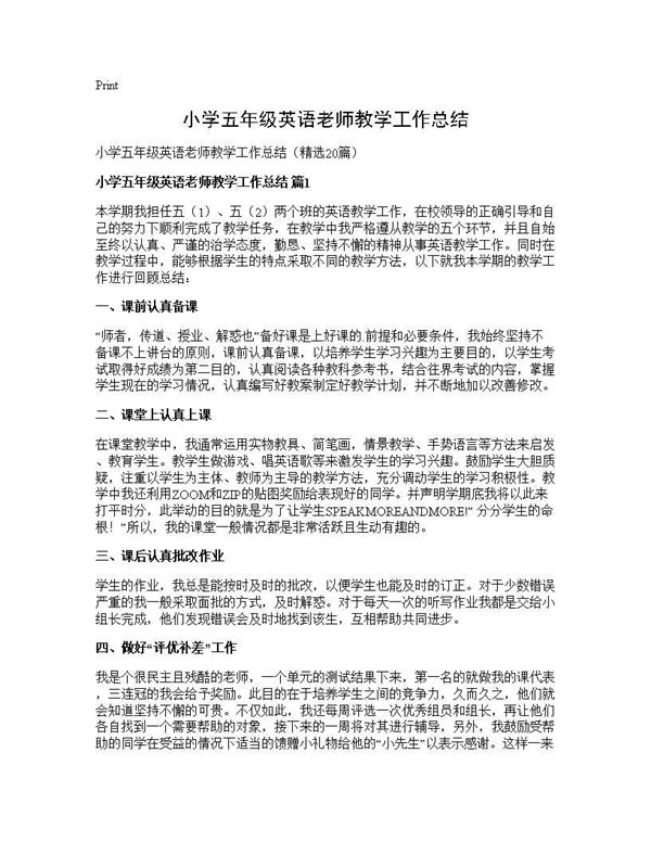 小学五年级英语老师教学工作总结 (共26页) 【免费下载】