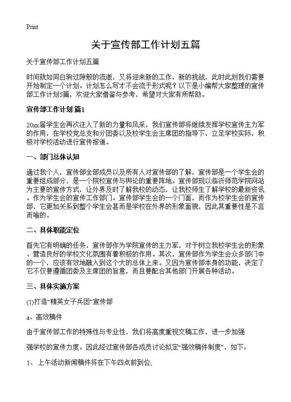 关于宣传部工作计划五篇 (共7页) 【免费下载】