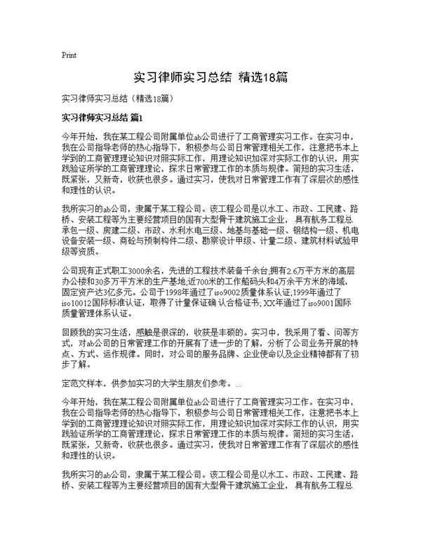 实习律师实习总结(精选)是记录实习律师在律所或法律机构实践经历的重要文档,旨在总结实习期间的工作内容、学习成果、职业成长与心得体会。通过精选案例、参与项目、指导律师反馈等关键环节,实习律师可以系统梳理法律实务技能、职业素养提升以及未来发展方向,为正式执业奠定基础。这份总结不仅是对个人实习阶段的回顾,也是展示专业能力与职业态度的重要材料。