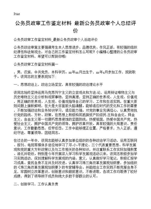 公务员政审工作鉴定材料 最新公务员政审个人总结评价 (共4页) 【免费下载】