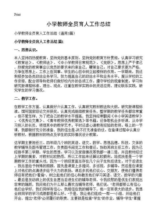 小学教师全员育人工作总结 (共5页) 【免费下载】