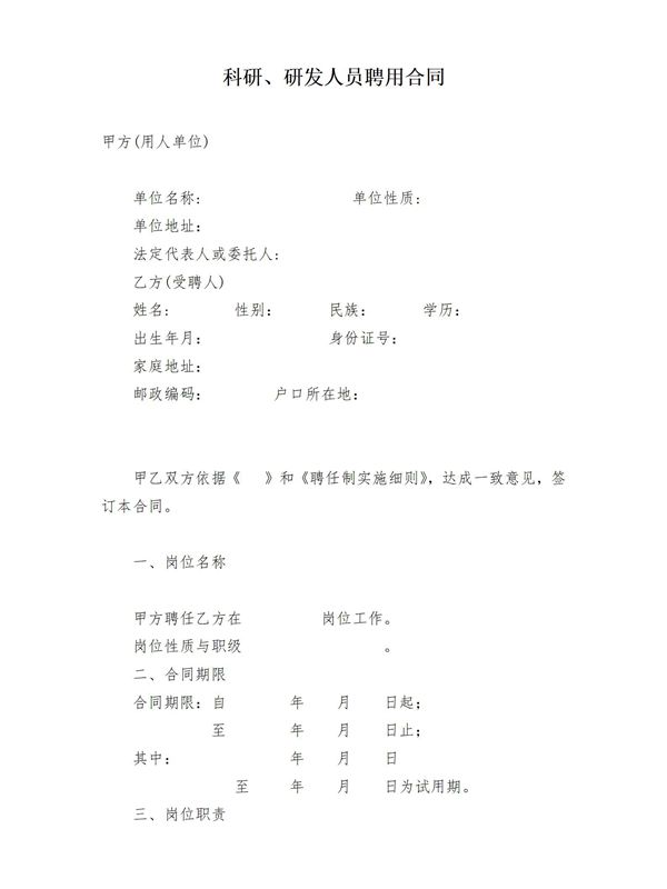 科研 研发人员聘用合同 (共6页) 【免费下载】