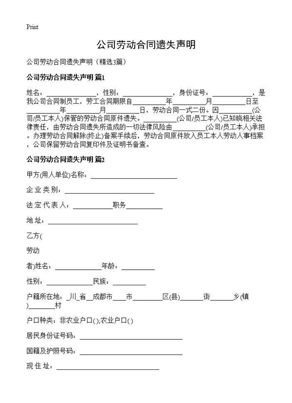 公司劳动合同遗失声明 (共8页) 【免费下载】