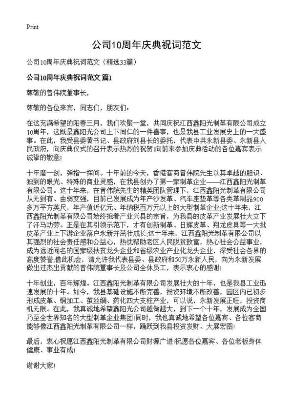 公司10周年庆典祝词范文 (共36页) 【免费下载】