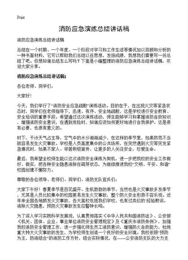 消防应急演练总结讲话稿 (共4页) 【免费下载】