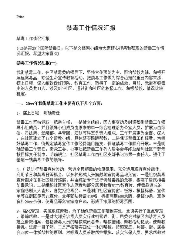 禁毒工作情况汇报 (共3页) 【免费下载】
