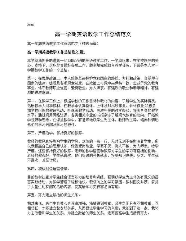 高一学期英语教学工作总结范文 (共34页) 【免费下载】