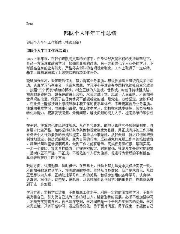 部队个人半年工作总结 (共31页) 【免费下载】