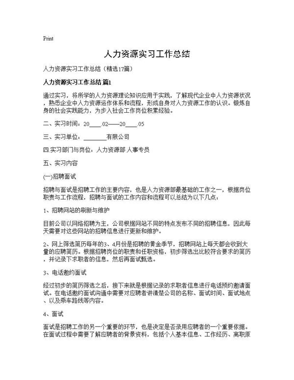 人力资源实习工作总结 (共24页) 【免费下载】