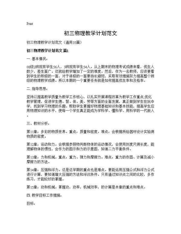 初三物理教学计划范文是针对初中三年级物理课程设计的教学指导方案,旨在帮助教师系统安排教学内容、明确教学目标并优化教学方法。该范文通常包含学期目标、教材分析、课时分配、重点难点解析、实验安排及评价方式等模块,强调理论与实践结合,注重培养学生的科学思维和实验能力。教师可根据实际学情调整内容,确保教学进度与学生认知水平相匹配,为中考复习打下坚实基础。