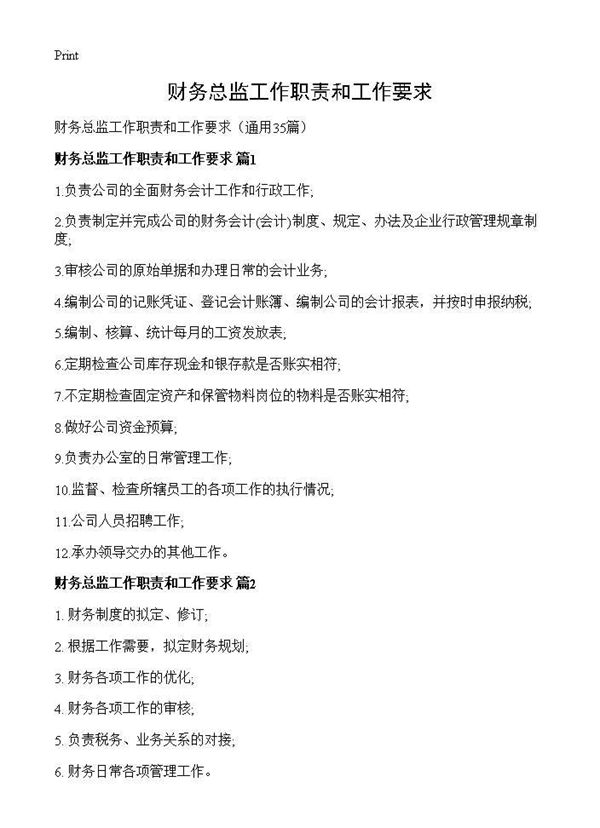 财务总监工作职责和工作要求 (共17页) 【免费下载】