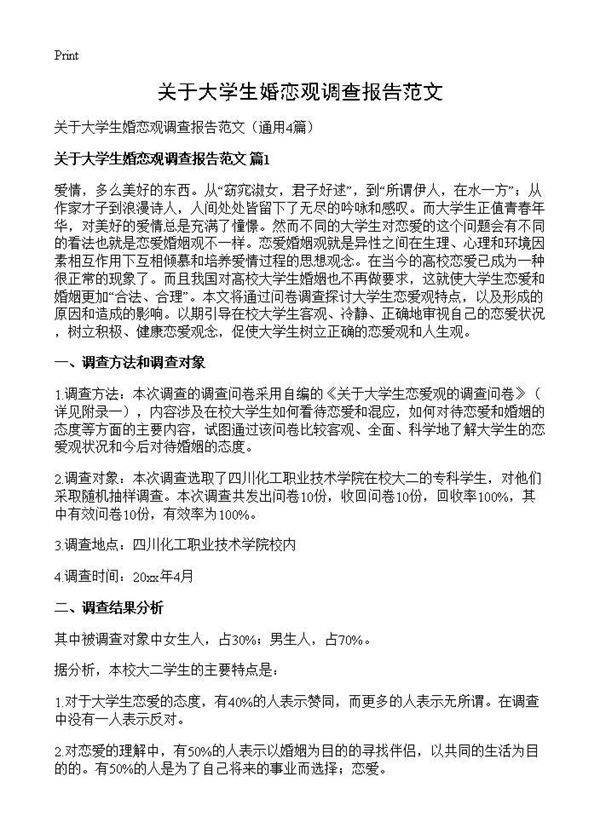 关于大学生婚恋观调查报告范文 (共13页) 【免费下载】