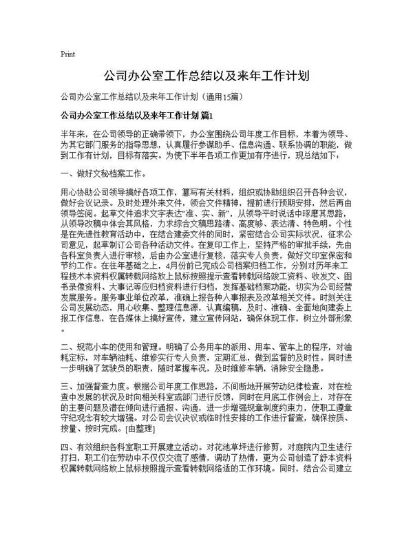 公司办公室工作总结以及来年工作计划 (共29页) 【免费下载】
