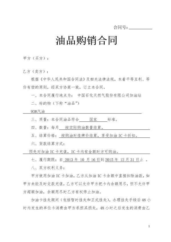 中石油加油站零售购销合同(加油卡样本) 模板 (共2页) 【免费下载】