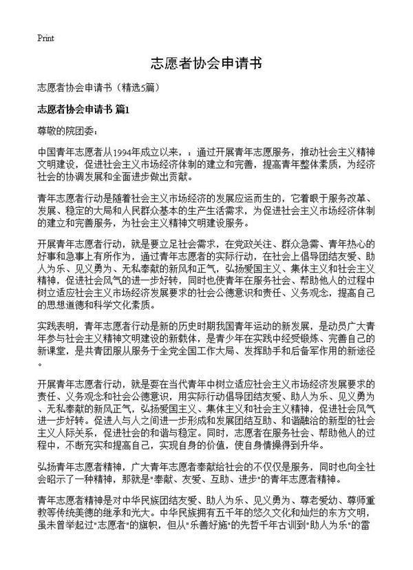 志愿者协会申请书 (共7页) 【免费下载】