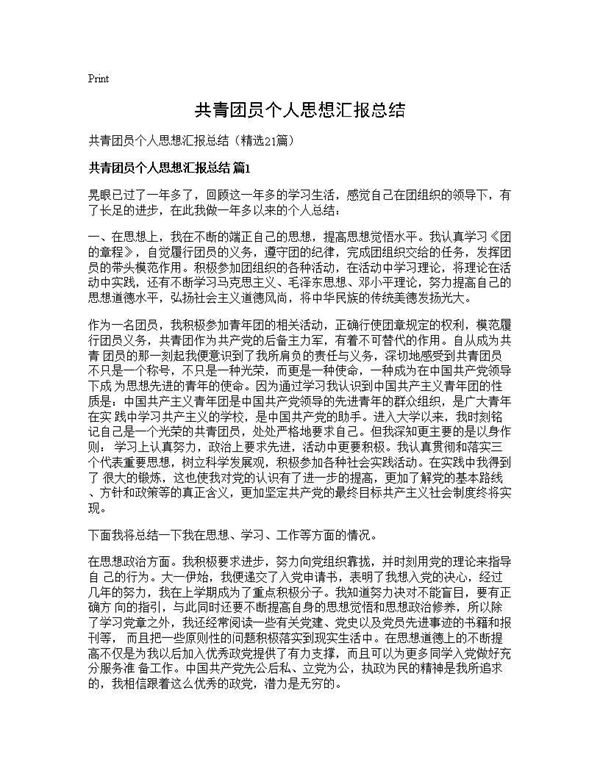 共青团员个人思想汇报总结 (共20页) 【免费下载】