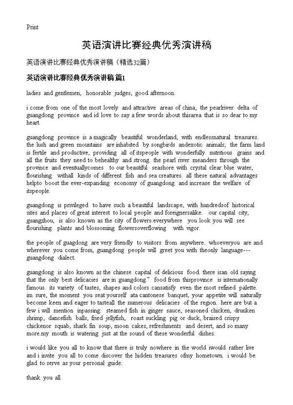 英语演讲比赛经典优秀演讲稿 (共27页) 【免费下载】