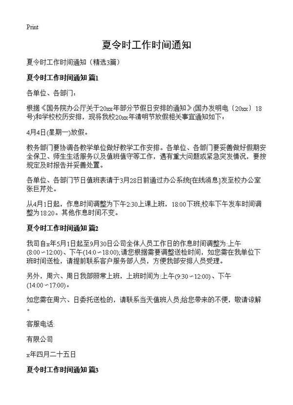 夏令时工作时间通知 (共2页) 【免费下载】