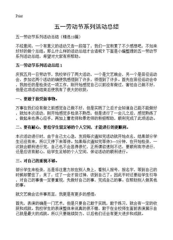 五一劳动节系列活动总结 (共12页) 【免费下载】