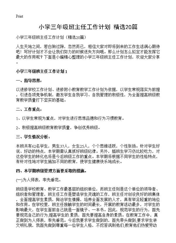 小学三年级班主任工作计划 (共32页) 【免费下载】