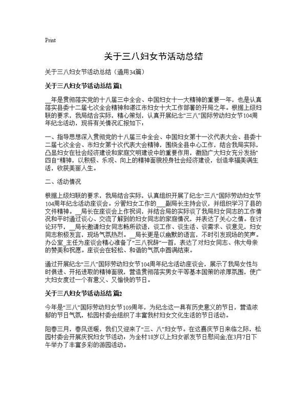 关于三八妇女节活动总结 (共23页) 【免费下载】