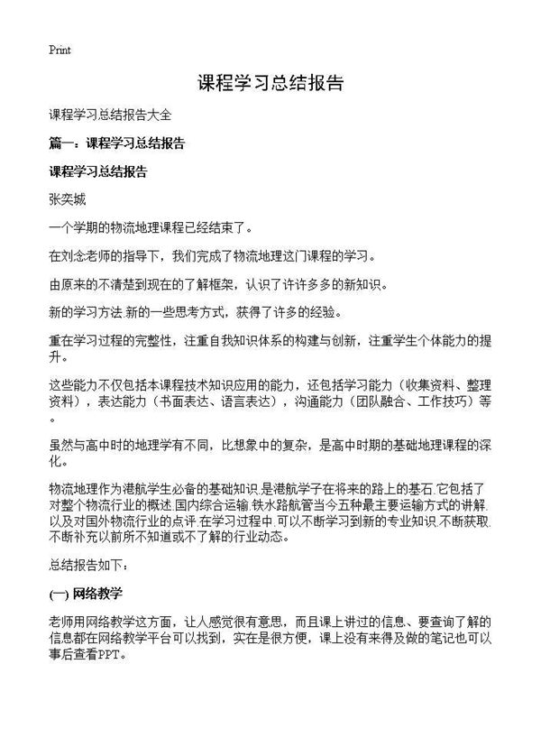 课程学习总结报告是对一段时间内所学课程内容的系统性回顾与反思。它旨在梳理课程的核心知识点,分析个人在学习过程中的收获与不足,并总结有效的学习方法与实践经验。通过撰写总结报告,学生能够巩固所学知识,提升自我认知能力,并为后续学习或工作提供参考依据。报告通常包含课程概述、重点内容总结、学习成果评估以及未来改进方向等关键部分。
