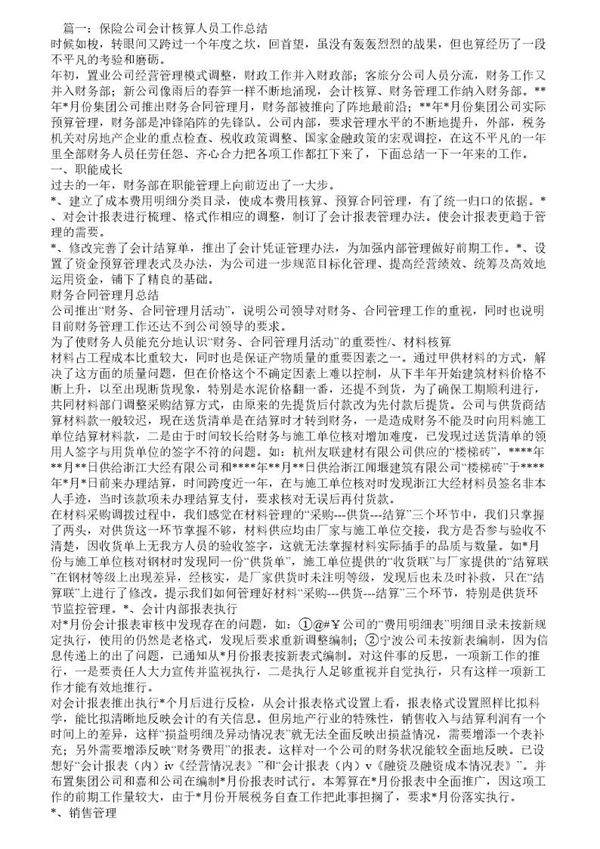 保险公司财务工作人员工作总结 (共5页) 【免费下载】