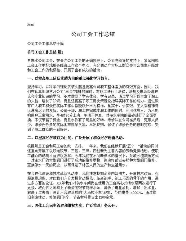 公司工会工作总结是对过去一段时间内工会工作的全面回顾与梳理,旨在总结成绩、分析问题、提炼经验,为今后工作提供参考。本总结围绕工会职能,从组织建设、权益维护、员工关怀、文化活动等方面展开,重点汇报工会在促进企业和谐发展、维护职工合法权益、丰富职工文化生活等方面取得的成效,同时反思存在的不足,并提出改进措施,以进一步提升工会工作水平,增强员工凝聚力,助力公司高质量发展。