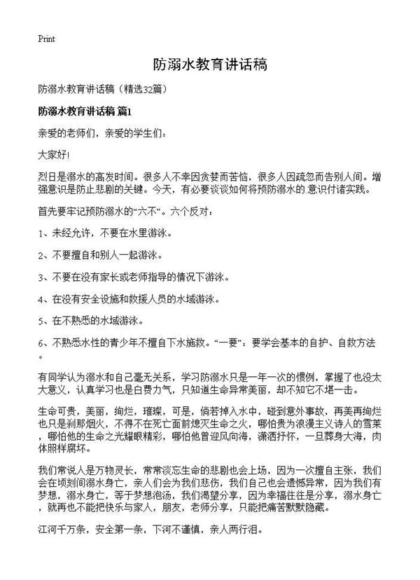 防溺水教育讲话稿 (共25页) 【免费下载】