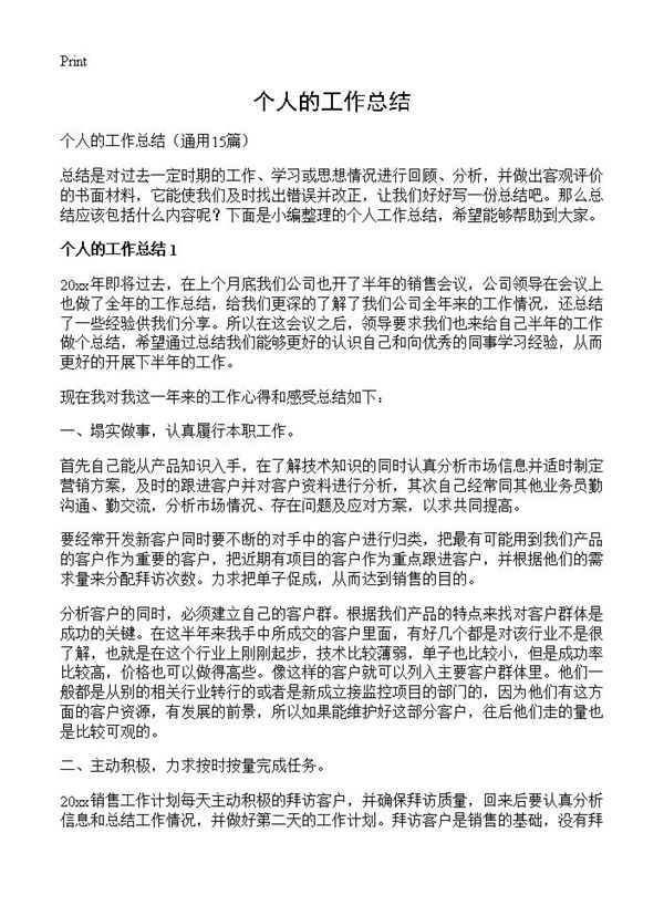 个人的工作总结 (共15页) 【免费下载】
