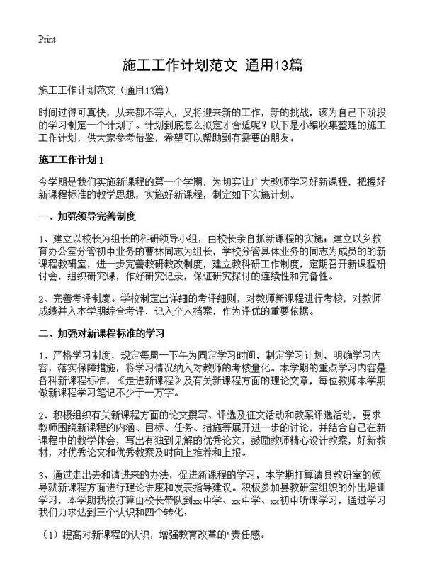 施工工作计划范文是指导工程项目顺利开展的重要文件,主要用于明确施工目标、分解任务节点、分配资源及制定时间安排。它通常包含工程概况、进度计划、资源配置、质量控制、安全保障等内容,帮助团队协调分工、规避风险,确保项目按时保质完成。范文可作为模板,根据实际需求调整具体细节,适用于建筑、装修、市政等各类施工场景。