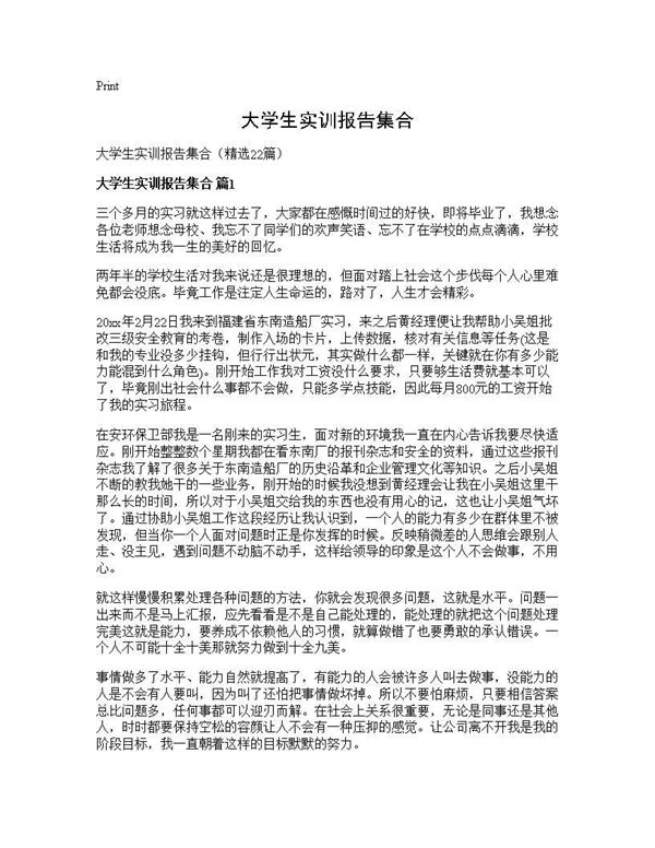 大学生实训报告集合是对学生在校期间参与各类实践训练活动的全面记录与总结。这些报告通常涵盖不同专业领域的实训内容,包括实验操作、项目开发、企业实习等实践环节。通过系统整理实训报告,既能展示学生的实践能力和专业素养,也为教学评估提供了重要参考依据。该集合不仅反映了理论知识与实践技能的结合成果,还体现了高校人才培养的质量与特色,是学生成长轨迹的重要见证。
