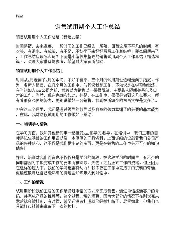 销售试用期个人工作总结 (共23页) 【免费下载】