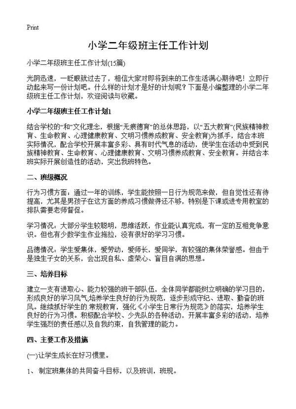 小学二年级班主任工作计划 (共30页) 【免费下载】
