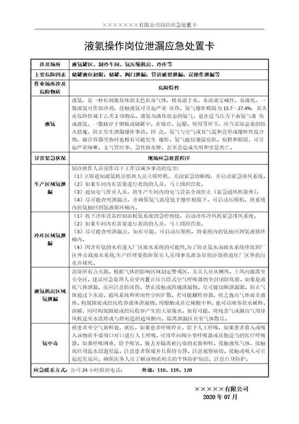 安全生产应急处置卡模板(液氨操作) (共1页) 【免费下载】
