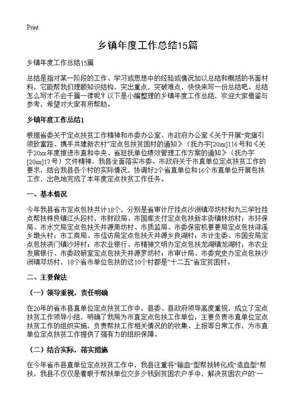2023年,我镇在县委、县政府的坚强领导下,坚持以习近平新时代中国特色社会主义思想为指导,全面贯彻落实党的二十大精神,紧紧围绕乡村振兴战略目标,统筹推进经济社会发展各项工作。一年来,我们聚焦产业发展、民生改善、环境整治、社会治理等重点领域,团结带领全镇干部群众攻坚克难、真抓实干,圆满完成了年度各项目标任务。全镇经济保持平稳健康发展,社会事业全面进步,民生福祉持续增进,乡村面貌显著改善,社会大局和谐稳定,为全面推进乡村振兴奠定了坚实基础。现将本年度工作情况总结如下。