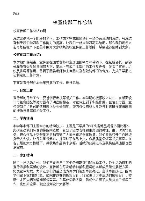 校宣传部工作总结简介:过去一年,校宣传部紧紧围绕学校中心工作,以传播校园文化、弘扬正能量为核心,积极开展各项宣传工作。通过线上线下相结合的方式,充分利用校园官网、微信公众号、宣传栏等平台,及时发布校园动态,展示师生风采,营造了良好的校园文化氛围。同时,宣传部还组织策划了多项主题活动,如校庆宣传、先进典型报道等,进一步提升了学校的对外形象和社会影响力。在团队建设方面,注重培养宣传骨干,提升工作水平,确保宣传工作的质量和效率。未来,宣传部将继续创新宣传方式,深化内容建设,为学校发展提供更有力的舆论支持。